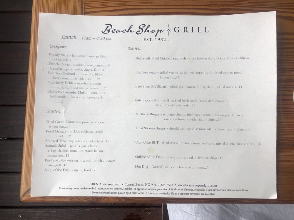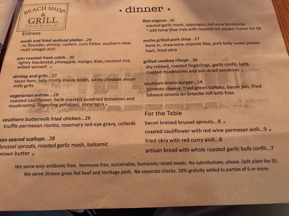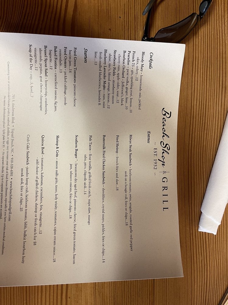 Beach Shop & Grill, located in Topsail Beach, NC, is a hidden gem offering a delightful atmosphere and a diverse menu. With a focus on New American cuisine, seafood, and cocktails, this restaurant caters to all tastes. They provide many vegetarian options, making it a suitable choice for all diners.